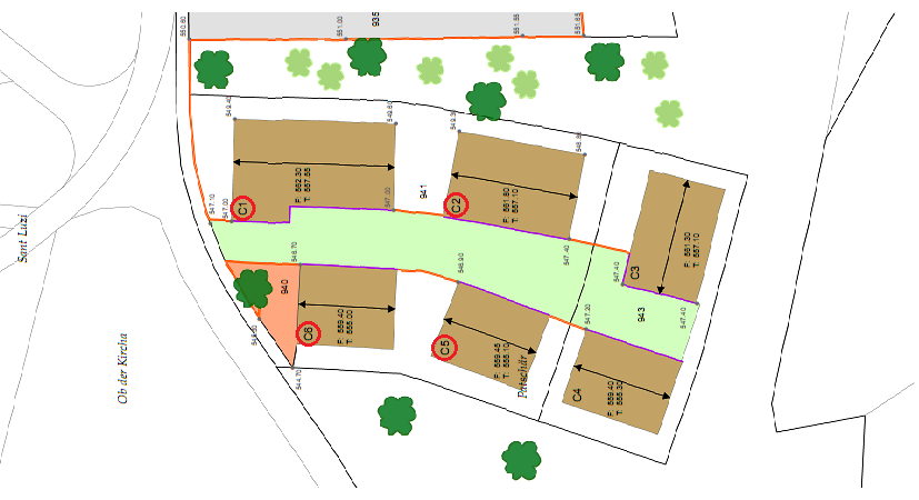Das Projekt ist aufgeteilt auf die Bauherren Arthur Hermann (Haus C, D), und Heinz-Urs Kunz (Haus A, B, E, F).